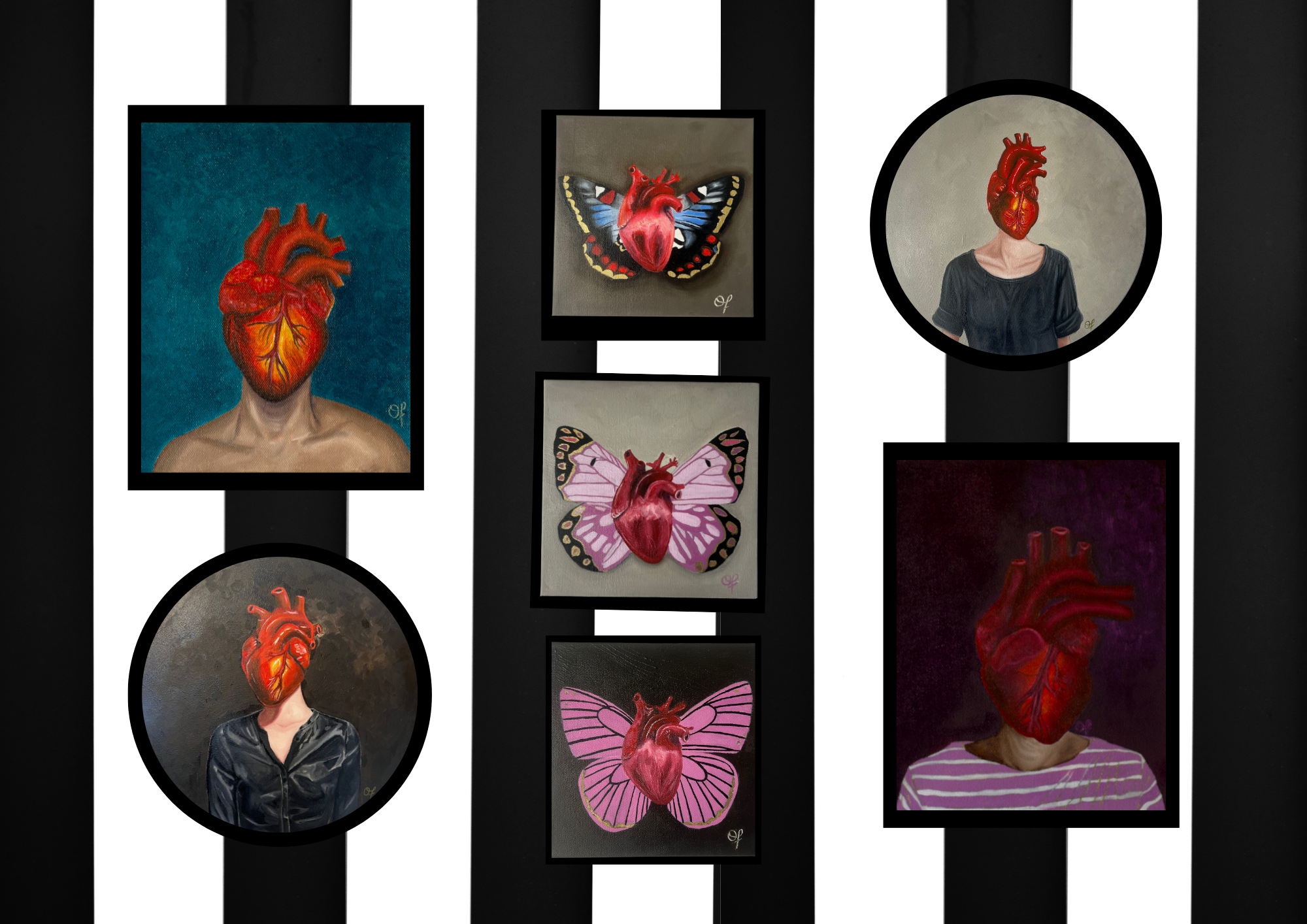 Themes of motherhood, mental health, and love interweave through my work. Anatomical organs symbolize the depth of the human emotions. Discover the beauty of self-expression through captivating portraits and intricate anatomical organs, showcasing the inner outer self.